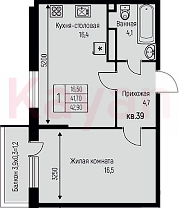 Продажа 1-комн. квартиры, 41.7 кв.м