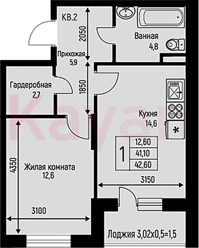 Продажа 1-комн. квартиры, 41.1 кв.м