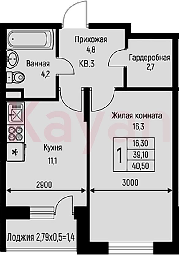Продажа 1-комн. квартиры, 39.1 кв.м