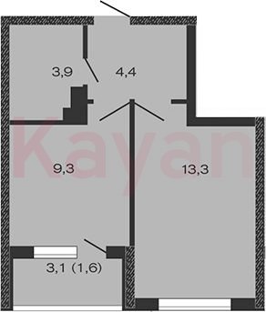 Квартира в ЖК «ДЗЕНПАРК» (Лендекс) литер 9 очередь 1, Кирпично-монолитный, 1 к.кв., 30.9 кв.м., 1/4, высота потолков: 2.7 м, жилая площадь: 13.3 кв.м., возможна ипотека, площадь кухни 9.3 кв.м.,