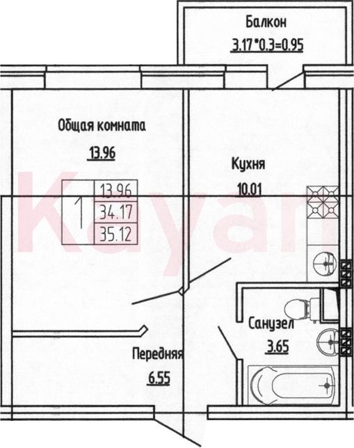 Продажа 1-комн. квартиры, 34.17 кв.м