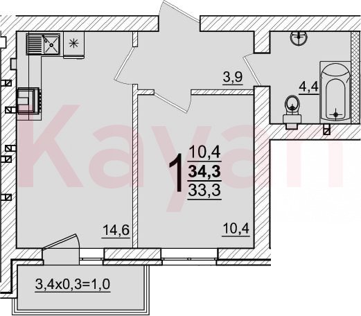 Продажа 1-комн. квартиры, 33.3 кв.м