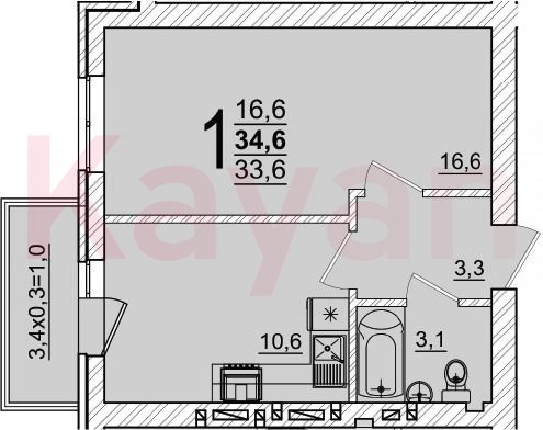 Продажа 1-комн. квартиры, 33.6 кв.м