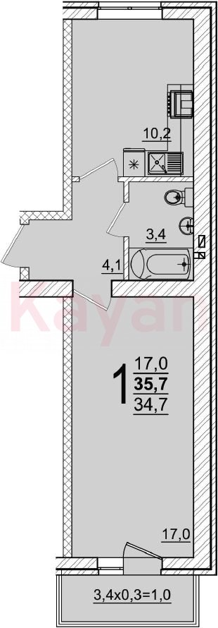 Продажа 1-комн. квартиры, 34.7 кв.м