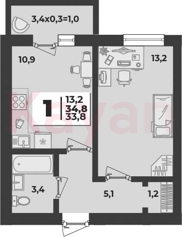 Продажа 1-комн. квартиры, 33.8 кв.м