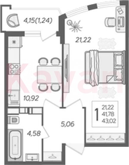 Продажа 1-комн. квартиры, 40.76 кв.м