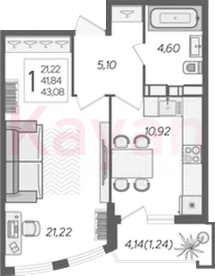 Продажа 1-комн. квартиры, 40.76 кв.м