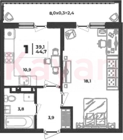 Квартира в ЖК «Лето» (Дарстрой) литер 1.7 очередь 1, Кирпично-монолитный, 1 к.кв., 36.7 кв.м., 9/9, высота потолков: 2.7 м, жилая площадь: 18.1 кв.м., возможна ипотека, площадь кухни 10.9 кв.м.,