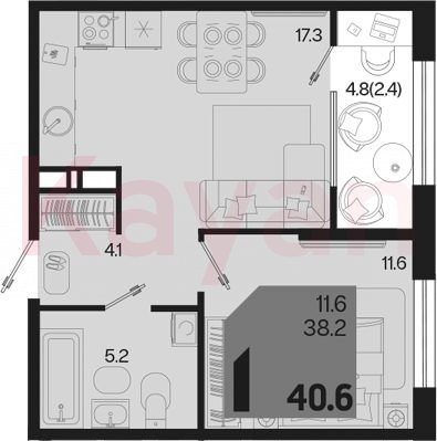Продажа 1-комн. квартиры, 38.2 кв.м