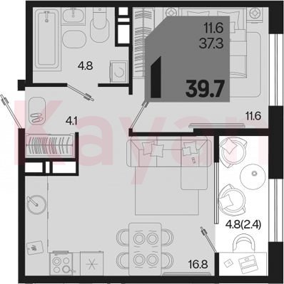 Продажа 1-комн. квартиры, 37.3 кв.м