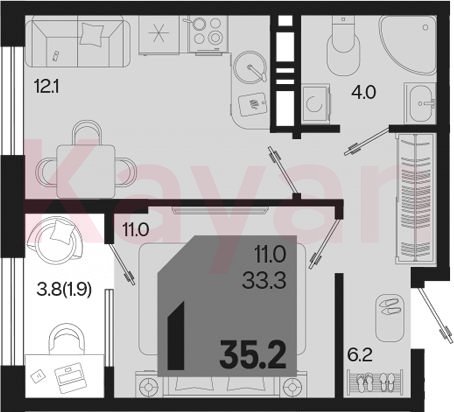 Продажа 1-комн. квартиры, 33.3 кв.м