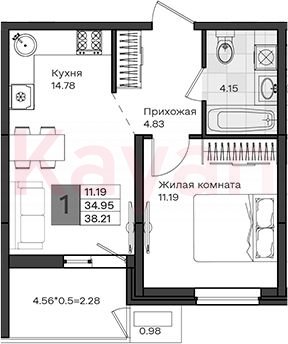 Продажа 1-комн. квартиры, 34.95 кв.м