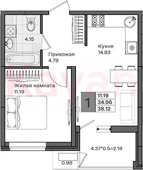 Продажа 1-комн. квартиры, 34.96 кв.м
