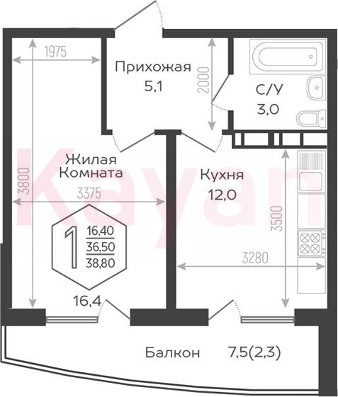 Продажа 1-комн. квартиры, 37.4 кв.м