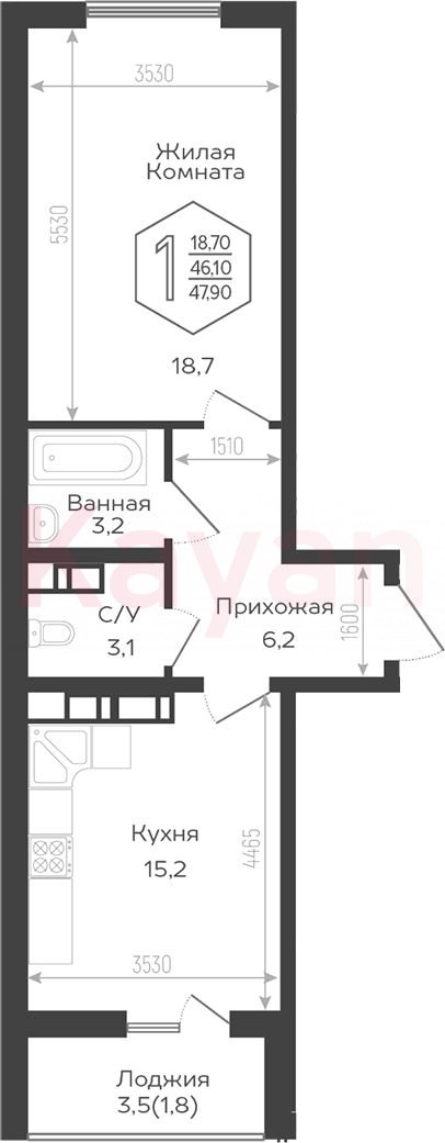 Продажа 1-комн. квартиры, 44.5 кв.м