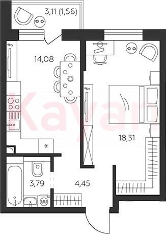 Продажа 1-комн. квартиры, 40.63 кв.м