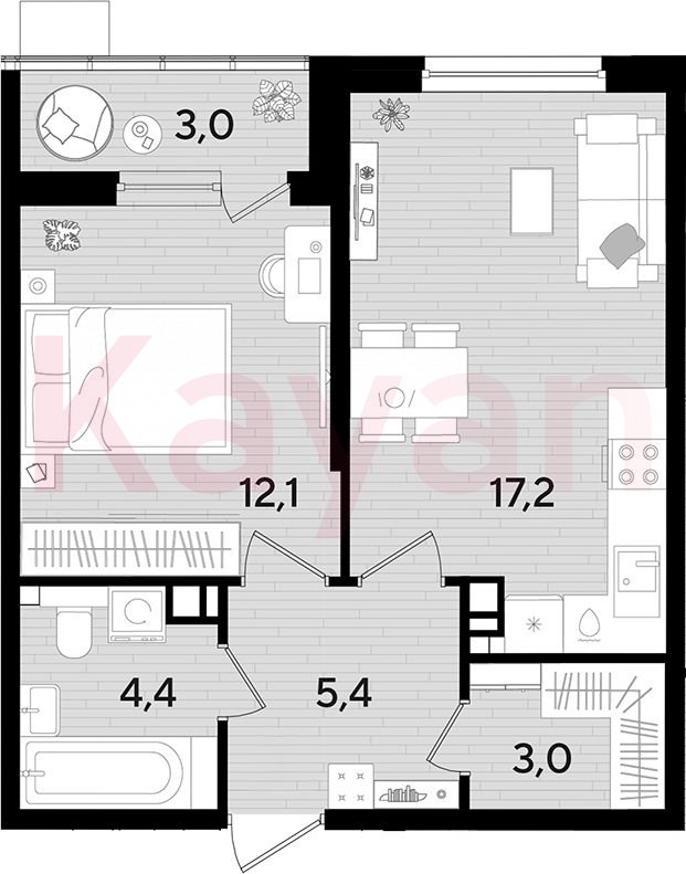 Продажа 1-комн. квартиры, 42.1 кв.м