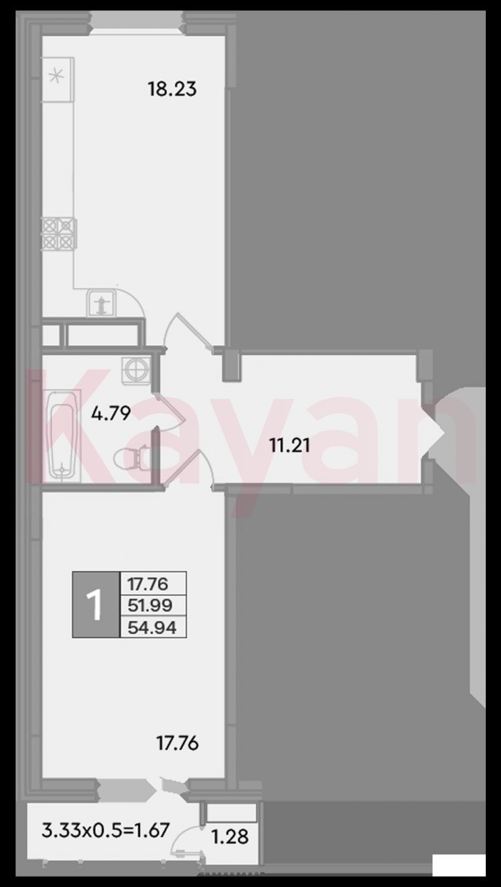 Продажа 1-комн. квартиры, 51.99 кв.м