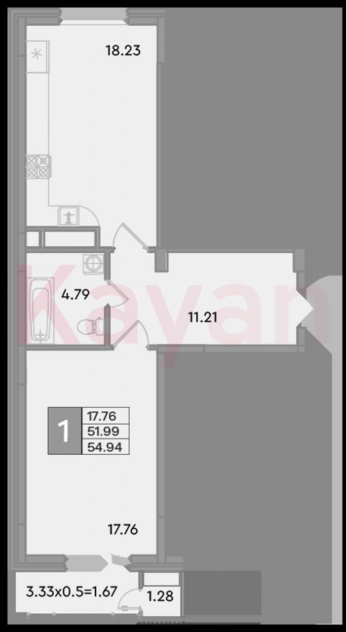 Продажа 1-комн. квартиры, 51.99 кв.м