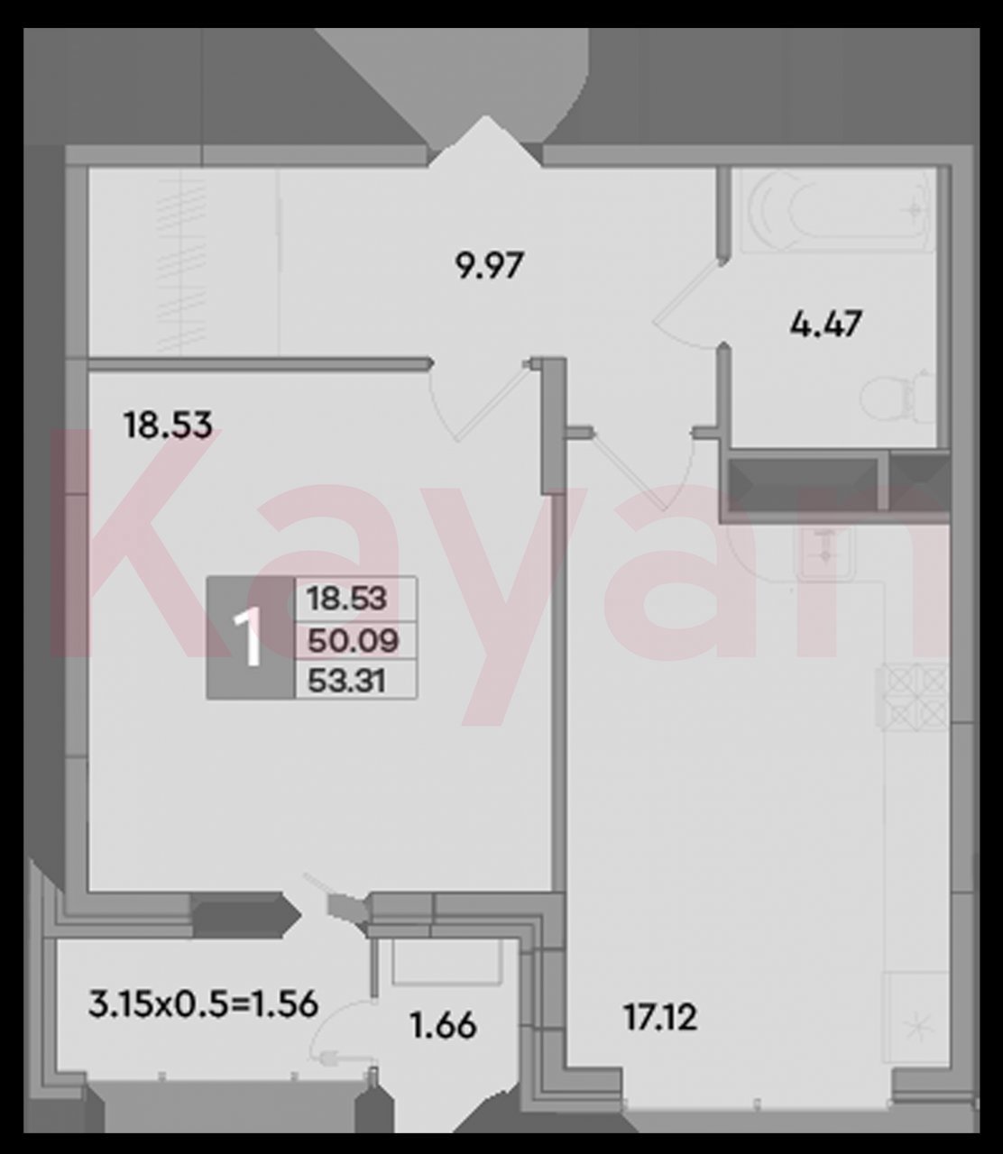 Продажа 1-комн. квартиры, 50.09 кв.м