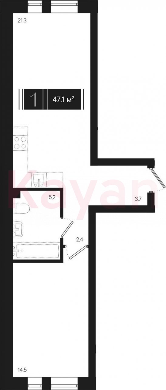 Продажа 1-комн. квартиры, 47.1 кв.м