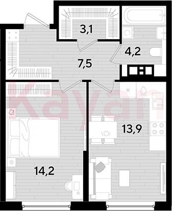 Продажа 1-комн. квартиры, 42.9 кв.м