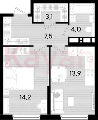 Продажа 1-комн. квартиры, 42.7 кв.м