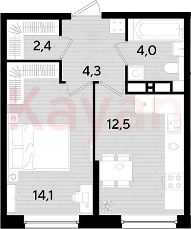 Квартира в ЖК «Dogma park (Догма парк)» (DOGMA. Краснодар) литер 31 очередь 3, Кирпично-монолитный, 1 к.кв., 37.3 кв.м., 11/16, высота потолков: 2.72 м, жилая площадь: 14.1 кв.м., возможна ипотека, возможна военная ипотека, площадь кухни 12.5 кв.м.,