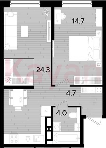 Квартира в ЖК «Dogma park (Догма парк)» (DOGMA. Краснодар) литер 31 очередь 3, Кирпично-монолитный, 1 к.кв., 47.7 кв.м., 11/16, высота потолков: 2.72 м, жилая площадь: 14.7 кв.м., возможна ипотека, возможна военная ипотека, площадь кухни 24.3 кв.м.,