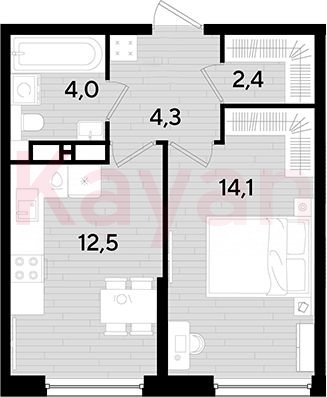 Квартира в ЖК «Dogma park (Догма парк)» (DOGMA. Краснодар) литер 31 очередь 3, Кирпично-монолитный, 1 к.кв., 37.3 кв.м., 11/16, высота потолков: 2.72 м, жилая площадь: 14.1 кв.м., возможна ипотека, возможна военная ипотека, площадь кухни 12.5 кв.м.,