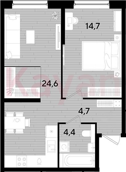 Продажа 1-комн. квартиры, 48.4 кв.м