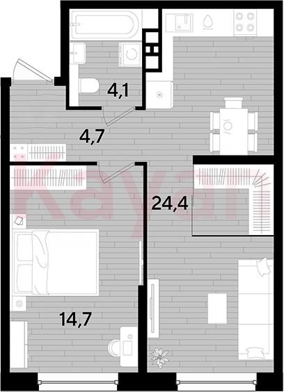 Квартира в ЖК «Dogma park (Догма парк)» (DOGMA. Краснодар) литер 33 очередь 3, Кирпично-монолитный, 1 к.кв., 47.9 кв.м., 6/16, высота потолков: 2.72 м, жилая площадь: 14.7 кв.м., возможна ипотека, возможна военная ипотека, площадь кухни 24.4 кв.м.,