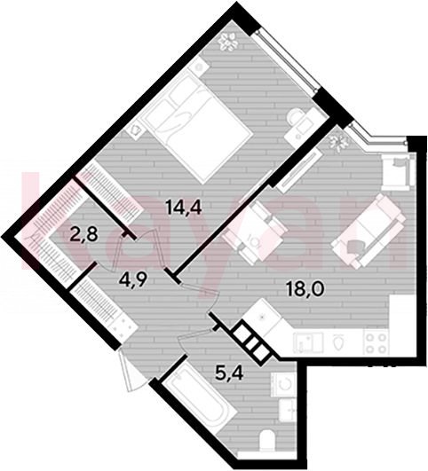 Продажа 1-комн. квартиры, 45.5 кв.м