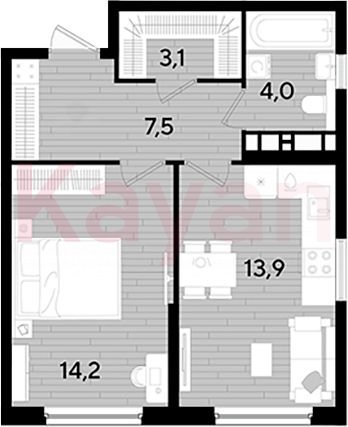 Продажа 1-комн. квартиры, 42.7 кв.м