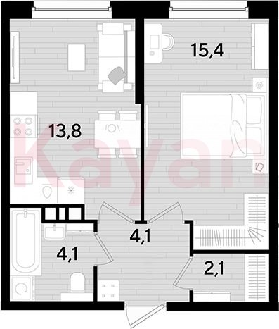 Квартира в ЖК «Dogma park (Догма парк)» (DOGMA. Краснодар) литер 32 очередь 3, Кирпично-монолитный, 1 к.кв., 39.5 кв.м., 6/16, высота потолков: 2.72 м, жилая площадь: 15.4 кв.м., возможна ипотека, возможна военная ипотека, площадь кухни 13.8 кв.м.,