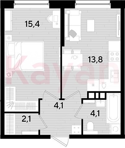 Квартира в ЖК «Dogma park (Догма парк)» (DOGMA. Краснодар) литер 34 очередь 3, Кирпично-монолитный, 1 к.кв., 39.5 кв.м., 7/16, высота потолков: 2.72 м, жилая площадь: 15.4 кв.м., возможна ипотека, возможна военная ипотека, площадь кухни 13.8 кв.м.,