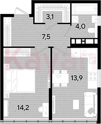 Продажа 1-комн. квартиры, 42.7 кв.м