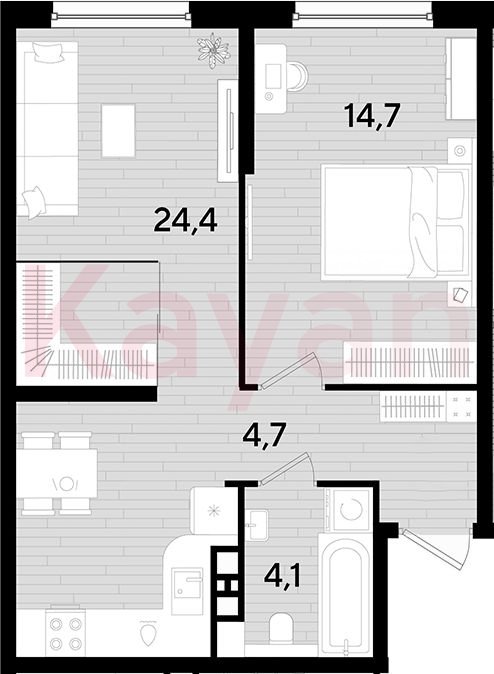 Продажа 1-комн. квартиры, 47.9 кв.м