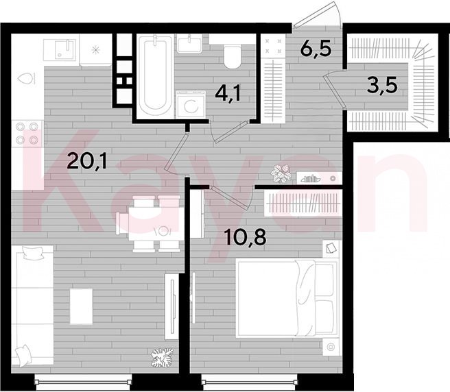 Квартира в ЖК «Dogma park (Догма парк)» (DOGMA. Краснодар) литер 34 очередь 3, Кирпично-монолитный, 1 к.кв., 45 кв.м., 3/16, высота потолков: 2.72 м, жилая площадь: 10.8 кв.м., возможна ипотека, возможна военная ипотека, площадь кухни 20.1 кв.м.,
