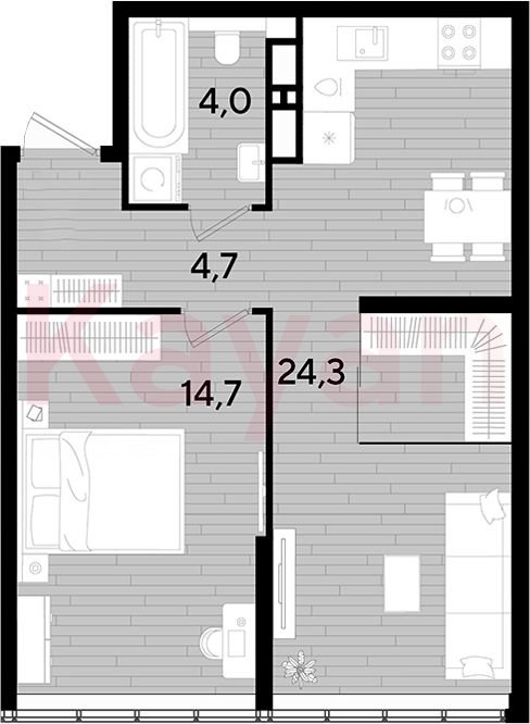 Продажа 1-комн. квартиры, 47.7 кв.м