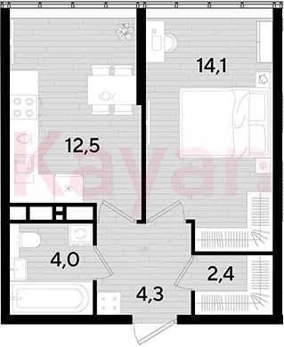 Квартира в ЖК «Dogma park (Догма парк)» (DOGMA. Краснодар) литер 35 очередь 3, Кирпично-монолитный, 1 к.кв., 37.3 кв.м., 15/16, высота потолков: 2.72 м, жилая площадь: 14.1 кв.м., возможна ипотека, возможна военная ипотека, площадь кухни 12.5 кв.м.,