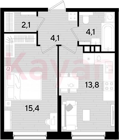 Квартира в ЖК «Dogma park (Догма парк)» (DOGMA. Краснодар) литер 35 очередь 3, Кирпично-монолитный, 1 к.кв., 39.5 кв.м., 6/16, высота потолков: 2.72 м, жилая площадь: 15.4 кв.м., возможна ипотека, возможна военная ипотека, площадь кухни 13.8 кв.м.,