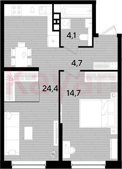 Квартира в ЖК «Dogma park (Догма парк)» (DOGMA. Краснодар) литер 35 очередь 3, Кирпично-монолитный, 1 к.кв., 47.9 кв.м., 7/16, высота потолков: 2.72 м, жилая площадь: 14.7 кв.м., возможна ипотека, возможна военная ипотека, площадь кухни 24.4 кв.м.,