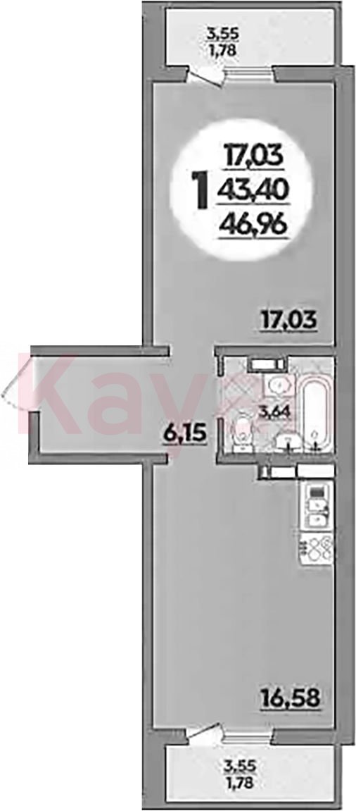 Продажа 1-комн. квартиры, 43.4 кв.м