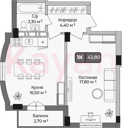 Продажа 1-комн. квартиры, 41.45 кв.м