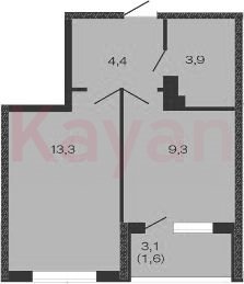 Квартира в ЖК «ДЗЕНПАРК» (Лендекс) литер 1 очередь 1, Монолитный, 1 к.кв., 30.9 кв.м., 2/4, высота потолков: 2.7 м, жилая площадь: 13.3 кв.м., возможна ипотека, возможна военная ипотека, площадь кухни 9.3 кв.м.,