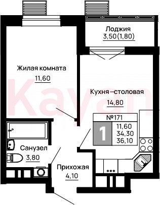 Квартира в ЖК «Традиции» (ССК. Краснодарский край) литер 1 очередь 1, Монолитный, 1 к.кв., 34.3 кв.м., 1/16, высота потолков: 2.72 м, жилая площадь: 11.6 кв.м., возможна ипотека, площадь кухни 14.8 кв.м.,