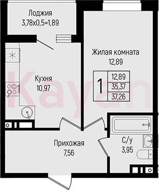Продажа 1-комн. квартиры, 35.37 кв.м