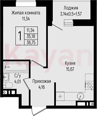 Продажа 1-комн. квартиры, 35.18 кв.м