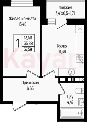 Продажа 1-комн. квартиры, 35.88 кв.м